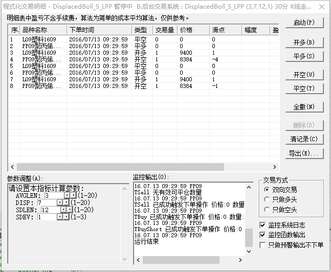 以下是交易日志 MA L PP1701合约是在其他平台发送的交易指令,金字塔的交易合约是L09和PP09,都没有发送委托。