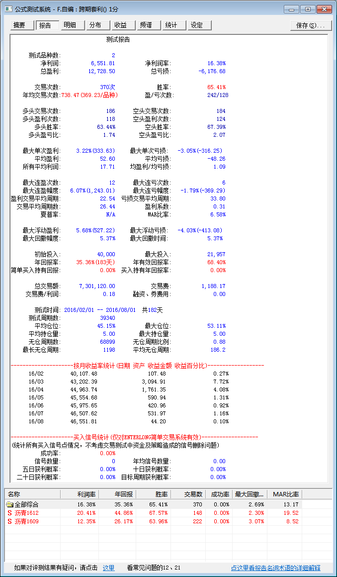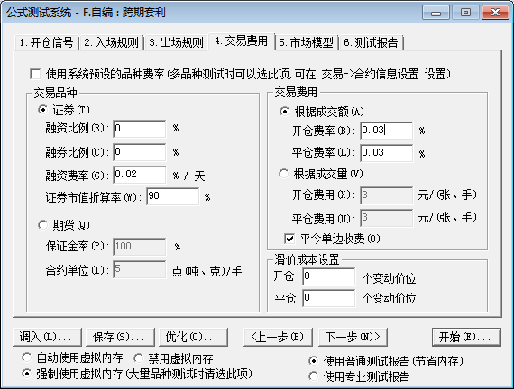 交易费用设置状况和回测报告