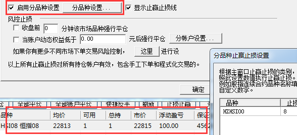 2.触发以后会平仓的,这个你看下你的设置,还有分品种设置上面的固定止盈止损要勾上,他们是一个总开关,