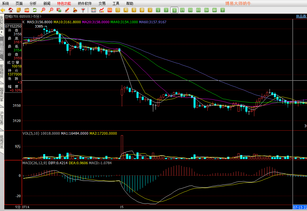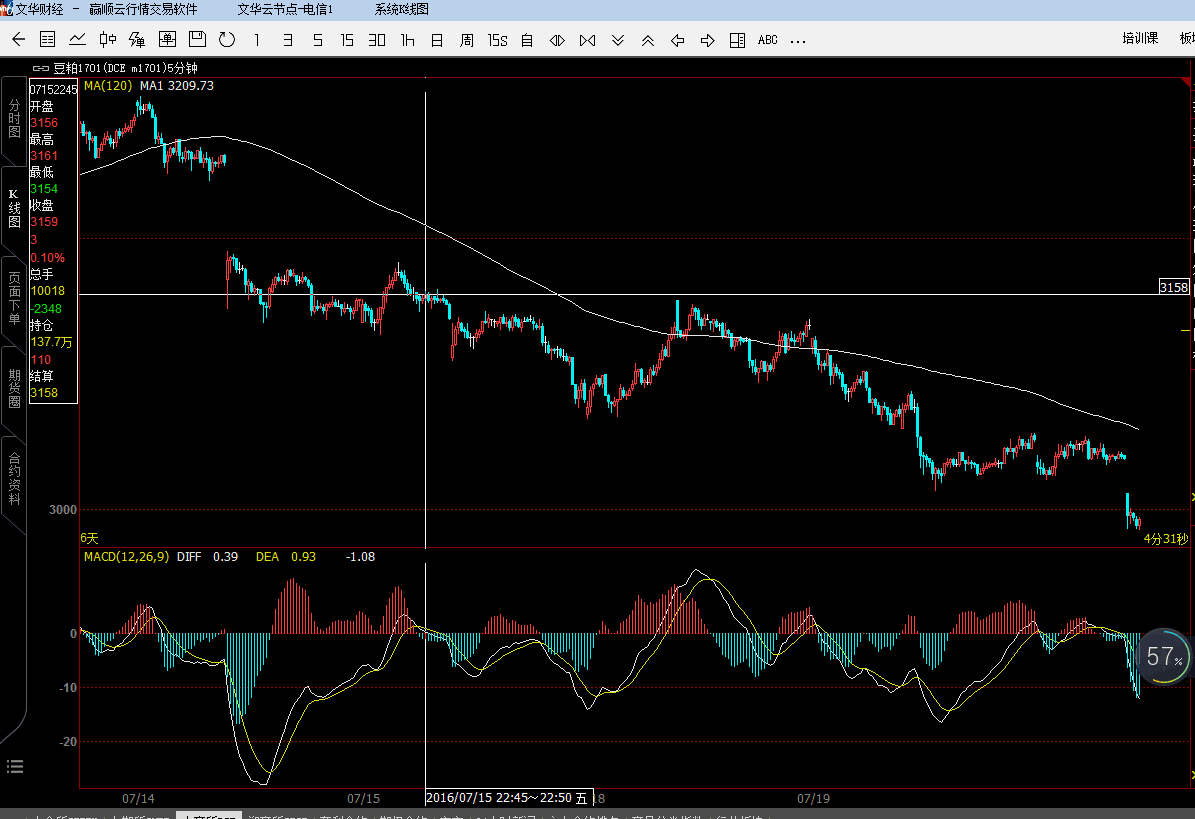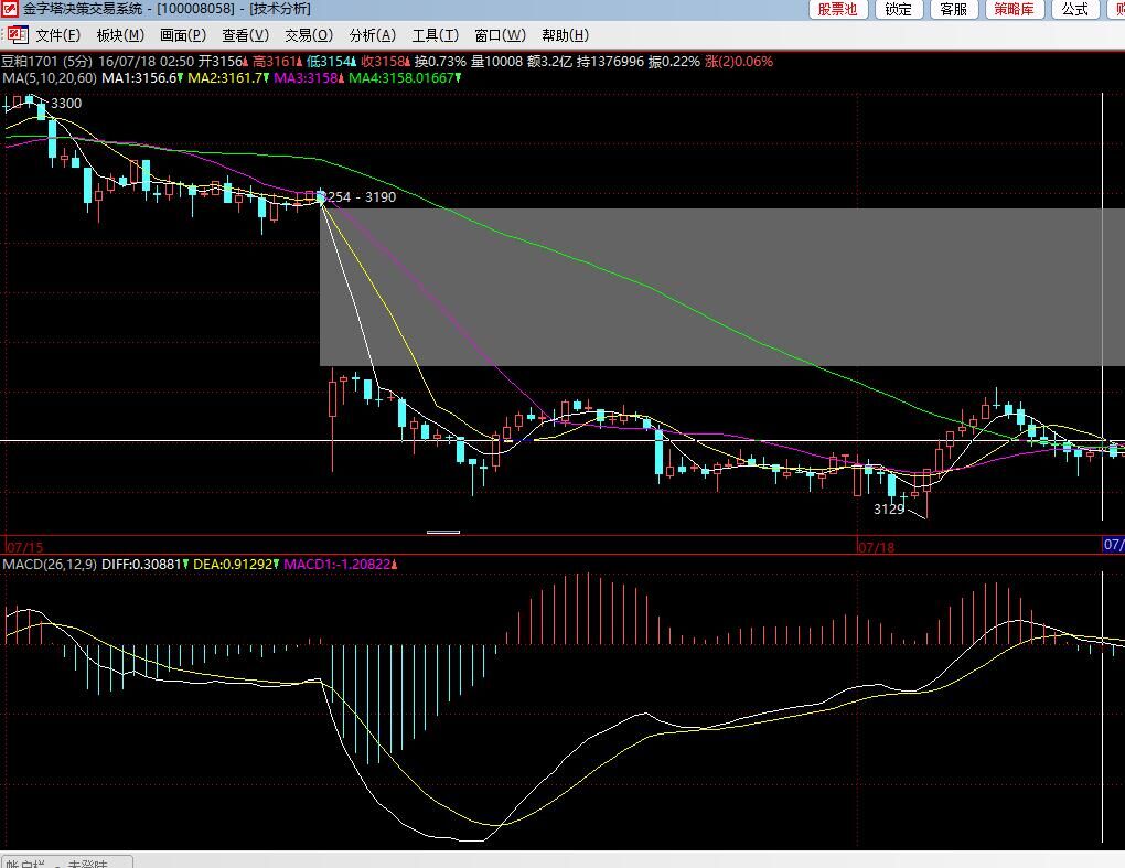 2016年7月15日22:50分的收盘价,只有金字塔的是3158,而其余两个都是3159。