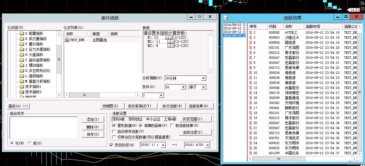 然后,对其右键,条件选股。 想测试下所写的程序,发现一个问题,希望有老师可以来解答。