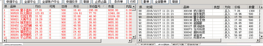 请看图中的“量子高科”,成交明细里显示的是17.78元成交,而持仓列表这里显示的持仓均价是17.81元(数量是一样的,没有分批成交,因此不存在平均价和成交价有差异的问题)。