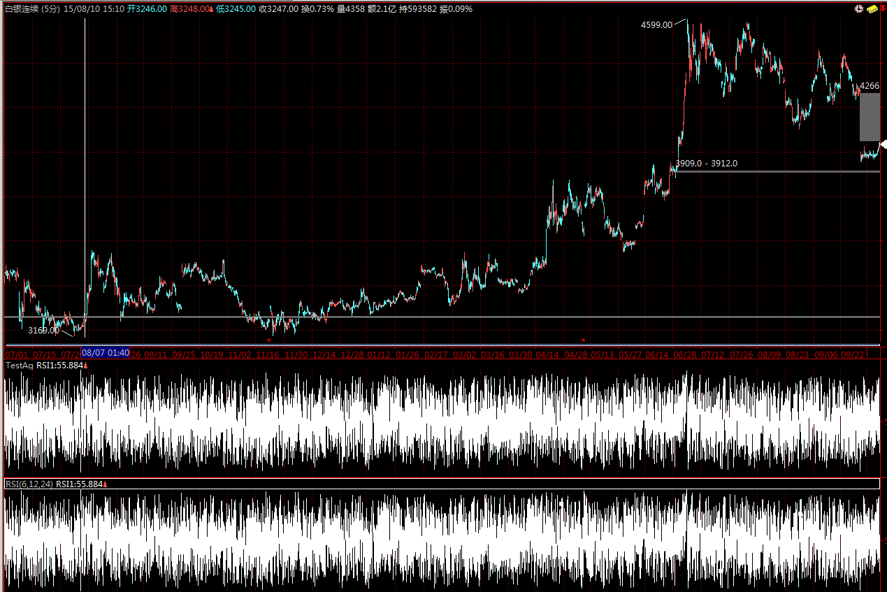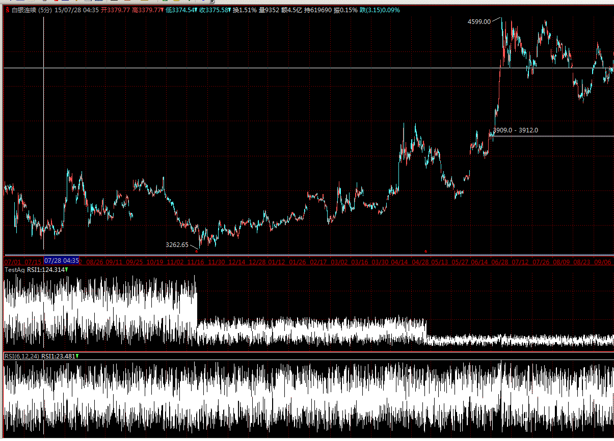 用自定义数据中的 证券相关序列 将运算量大的指标转化为自定义数据是个好想法。测试了几次效果意外:完全不可控制,现在发现问题所在了:复权导致的。按我的理解,自定义数据计算后就保存在硬盘中,每次只是读取而已,但价格数据的复权还是会带来意外的影响。以下是我用一个简单的RSI指标的第一个值在白银连续上测试的结果,图上显示出来每次价格复权都会导致变化。即使不在图形上显示,直接带入模型中,也是这样的变化。