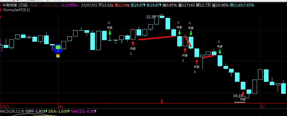 附件中,图上信号连线2015年6月10日开仓,2015年6月17日平仓,2015年6月18日开仓,6月19日平仓,6月19日开仓,6月26日平仓,