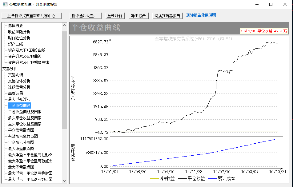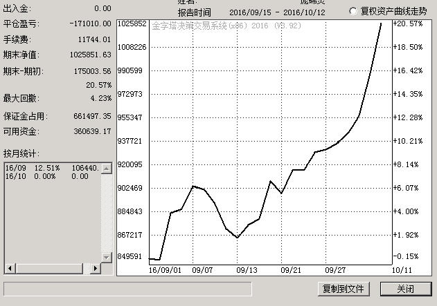 从9月1日开始收益曲线向上的,可平仓收益是负的,我查了一下,每个品种交易都不下10次,不可能出现,盈利是没有平仓的品种带来的,