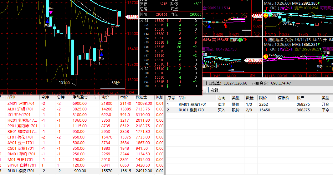 23      RM01 菜粕1701      KK          16/11/15 11:00:01    开空    1         2271      1       068275