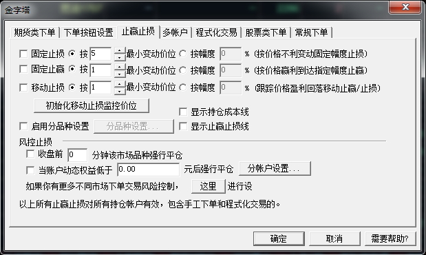 在交易---下单设置--止盈止损中可以设置