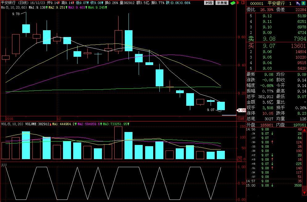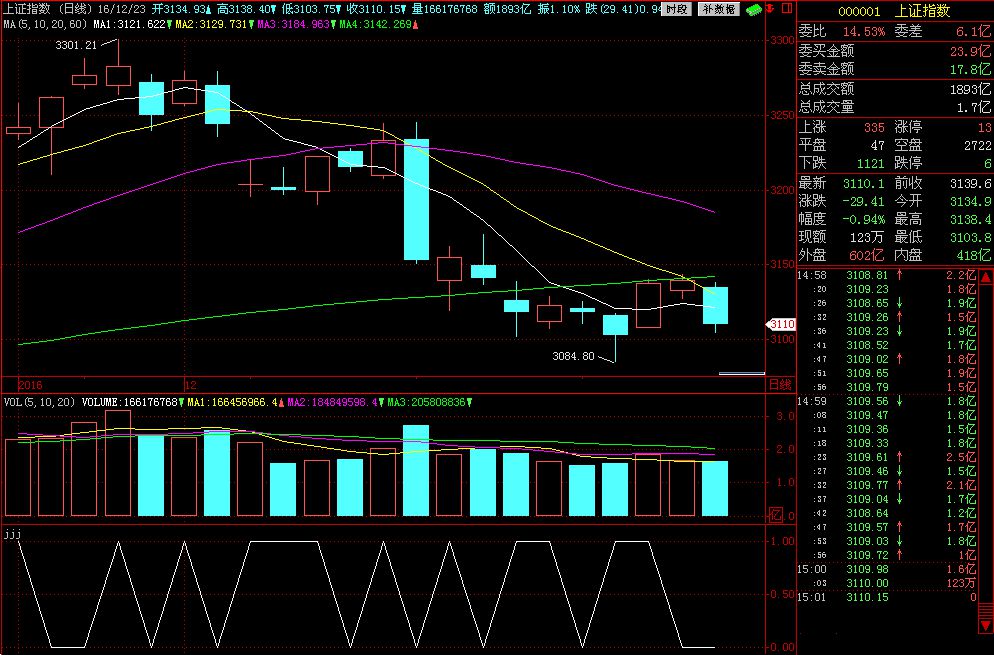INDEXO<ref(INDEXO,1);为什么在大盘上证指数上显示是0,而在个股上显示是1,时间2016-12-23的K线上