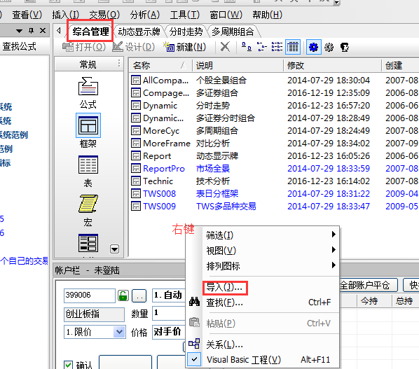 综合管理空白处右键-》导入 ,选择框架文件格式