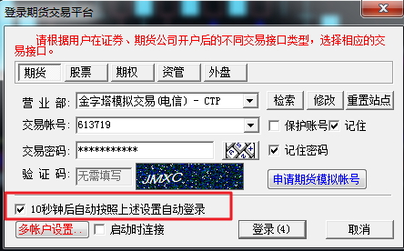 金字塔软件早上未登录状态。能不能设置短线之后,交易账号自动登录的?