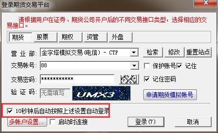 2,自动登陆登出的时间到了才会登陆,如果你设置的8点40登陆,你8点50打开的软件,那就需要你手工登录了。