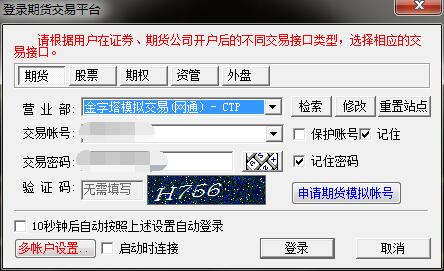 1、登陆的账号与选择的市场对应吗?期货、股票、外盘的模拟账号都需申请的。