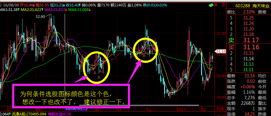 请教:为何条件选股图标颜色是这个色, 想改一下也改不了。  建议修正一下。