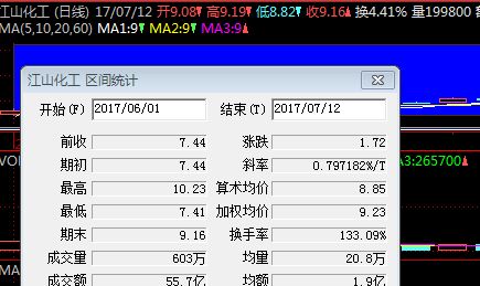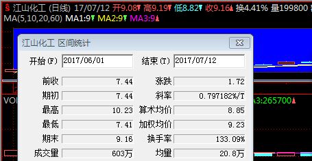 举例说明:002061在20170601——20170712的区间内没有发生除权除息,但是除权时的换手率是133.09%,等比前复权时的