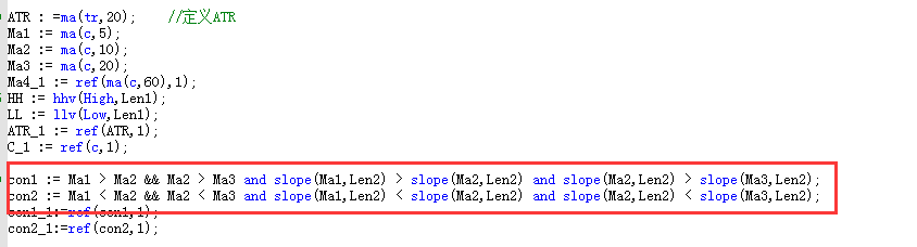 con1的意思是:ma>ma10,ma10>ma20,ma1的斜率大于ma2,ma2的斜率大于ma3
