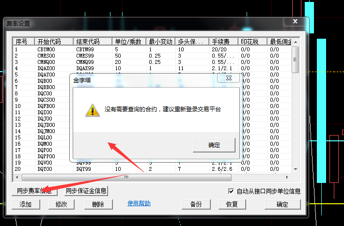 点接同步费率,出现没有需要查询的合约,建议重新登陆交易平台,出现这啥意思,同步不了,