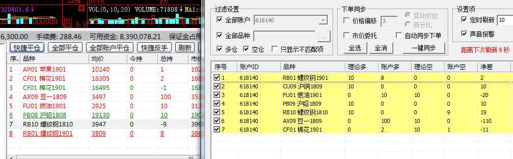 持仓监控器中一栏监控是账户持仓,一栏监控是图表的虚拟持仓,您是指这两个不一致吗? 这两项不一致说明您账户持仓和图表计算的虚拟持仓不一致