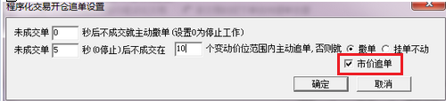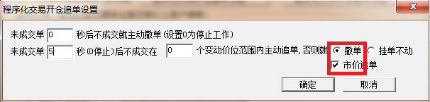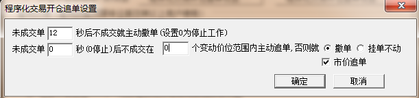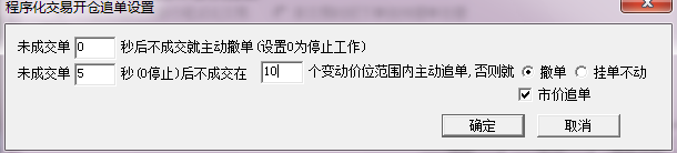 在“程序化交易开平仓追单设置”里,向我这样设置的前提下,“市价追单”的意思是:程序下单5秒未成交,然后再10个最小变动价位追单,否则撤单然后市价追单。这样理解对吗???如果不对怎么才对。