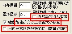 c、如下图这样的功能,什么智能扩展啊、只在启动接收有效啊、日内严格限制数量啊,等等多好的功能啊,只可惜它只为K线显示所用,偏心呐