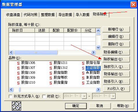在数据管理器中,以TXT形式导出除权数据,然后按照导出的数据格式和文件命名方法修改已有的数据文件,修改就能导入了