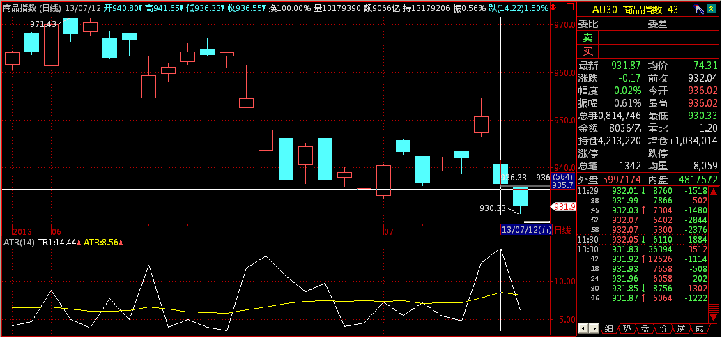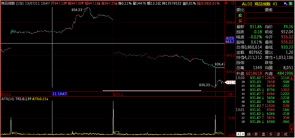 7月12日按当日分笔数据,商品指数收盘在945左右。
