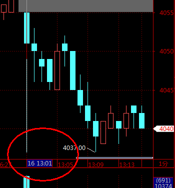1分钟K线上,明明是早上9:01,显示却是13:01,完全不能做自动交易了。
