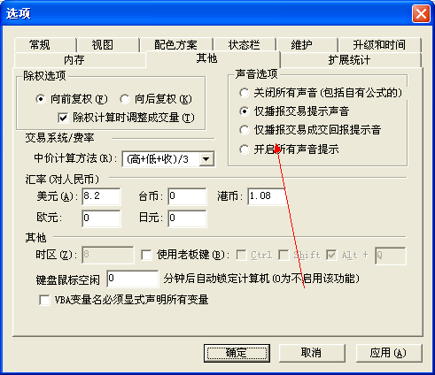 谢谢! 不过还是不能够选择设置自己想要的声音种类。看来声音是由金字塔控制且随机的,这就导致成交的声音经常自动变化。