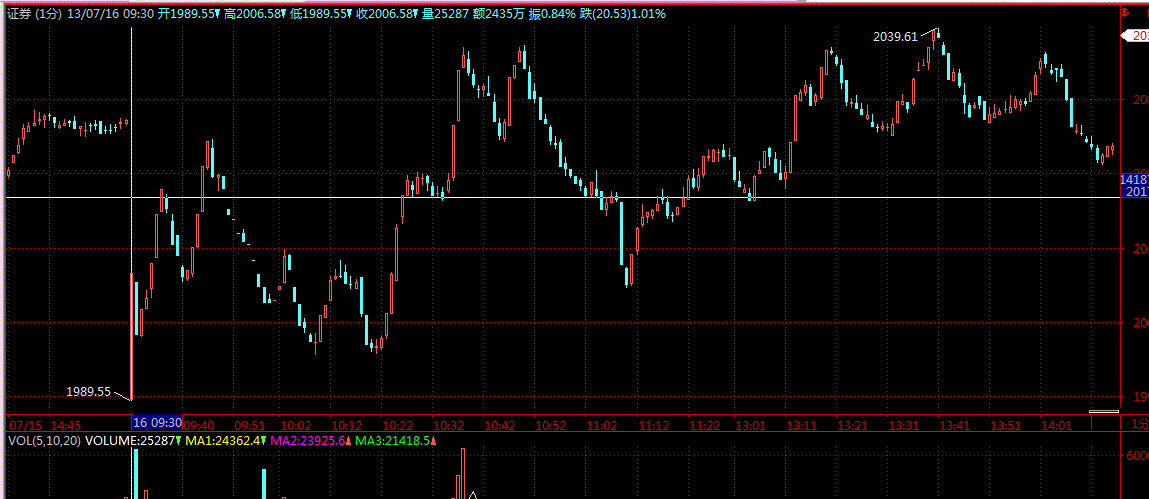 1分钟:多出了一根收盘时间为9:30的1分钟K线