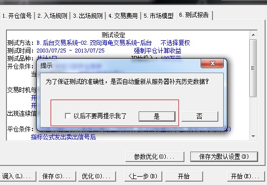 您好,您可以选择以后不再提示,但以后您测试时都不会提示您补充数据,所以您要确保测试时数据的完整性。