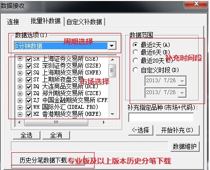 这里特别申明只能补充今日分笔成交数据,历史分笔数据需专业版才能下载