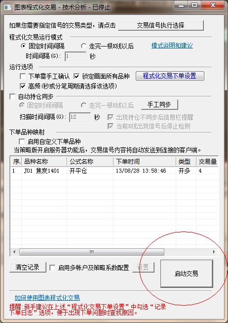 然后点击启动交易即可