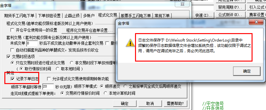 如果您对模型还是调试过程中,您需勾选交易日志。如果有不对开仓的位置是时间,您可结合本地的交易日志来进行分析处理