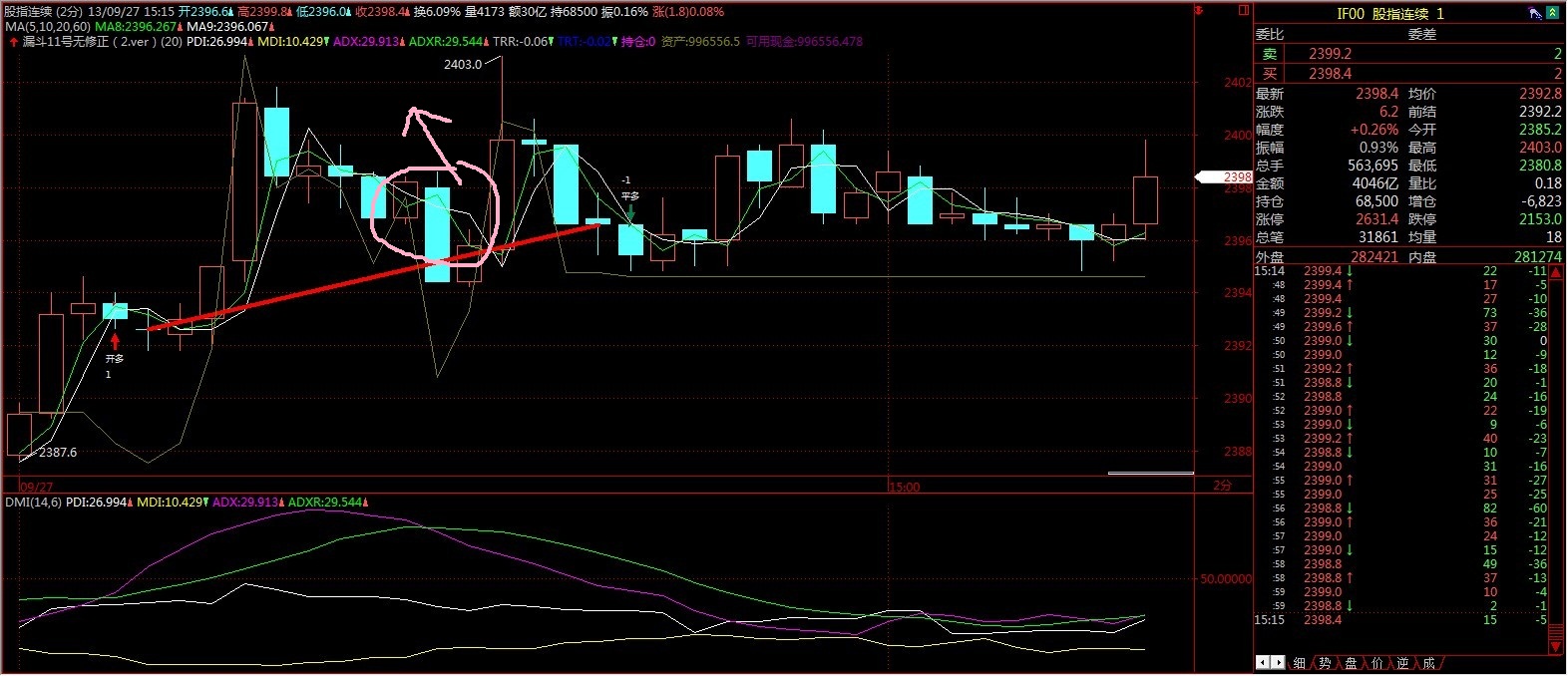 不知为何脱了那么久才平仓,而且这个信号还不是代码写的