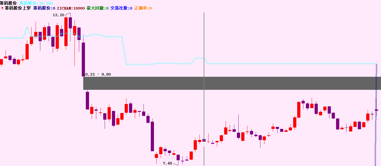 在交易系统里,因为是逐K模式,B点的计算与技术指标中不一样,导致错误,下图那个竖线是逐K模式下错误的B值,正确的B值是曲线。