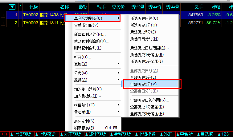 选到对应的套利合约,右键菜单