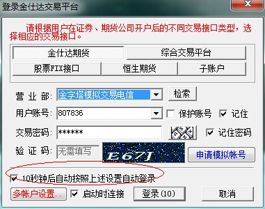你10秒后弹出的交易账户连接状态显示是什么?