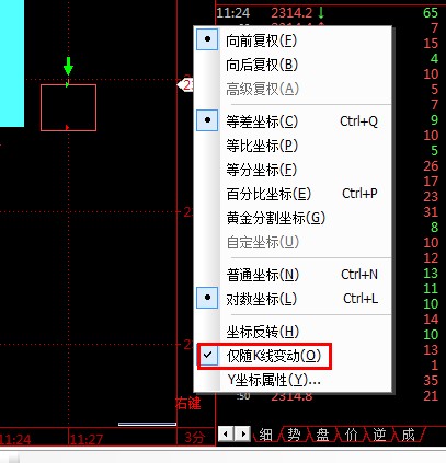 是不是加载公式导致压缩k线了,y轴选下仅随k线变动