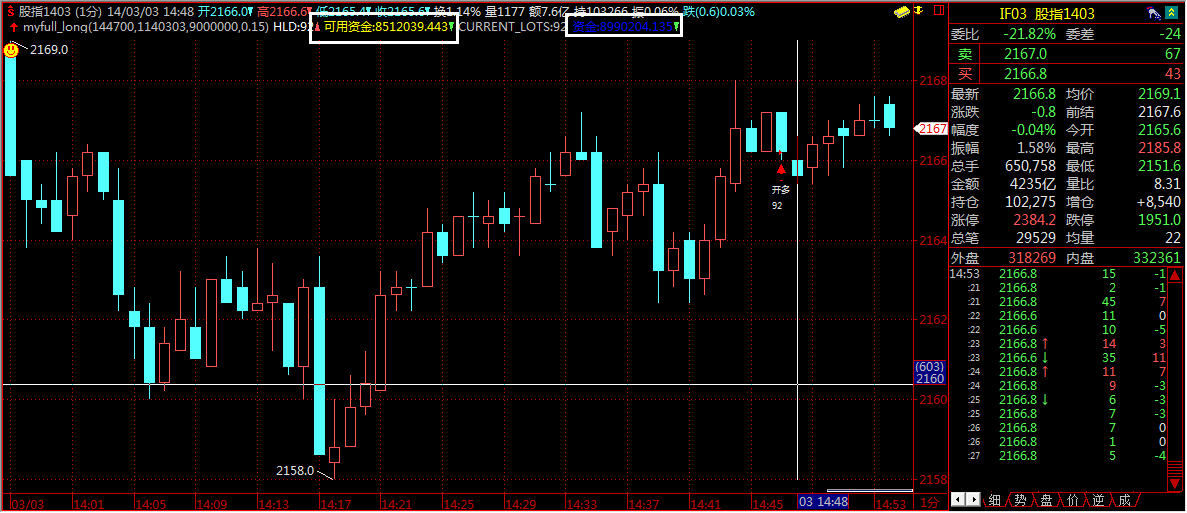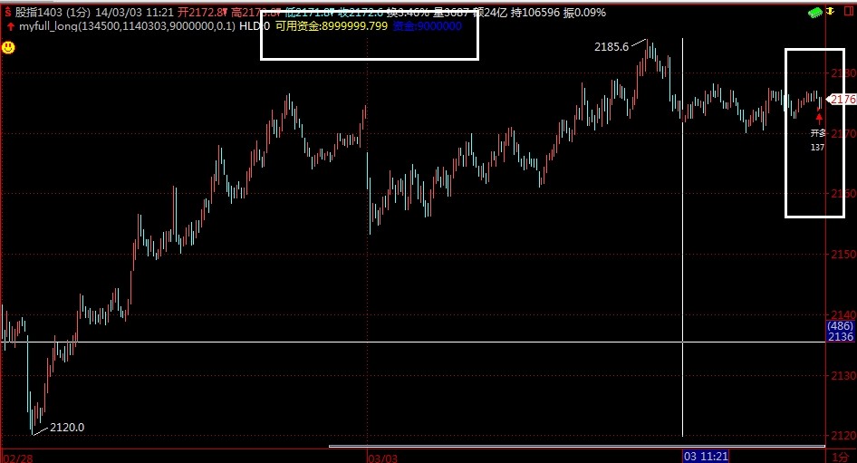 我刚才重新开了一次仓,虚拟账户里面有996万元,我用900万元满仓开仓,这是各种图的信号,第一次开仓137手没成交。