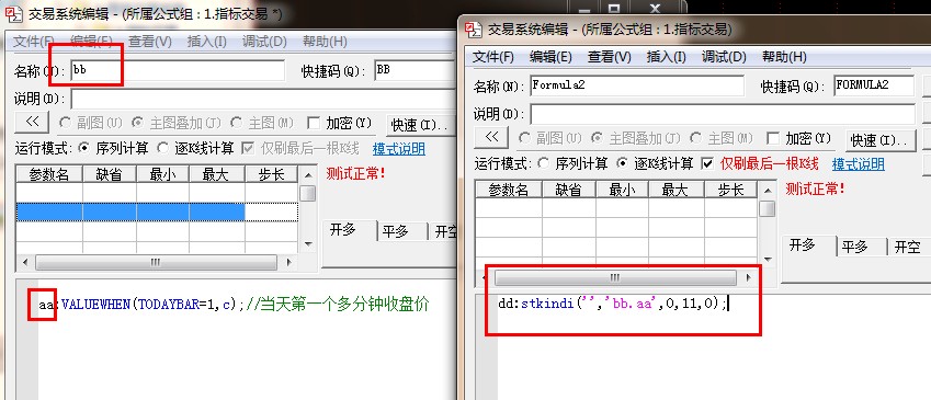 2,建一个公式命名bb, 取当天第一个多分钟收盘价,再用stkindi引用