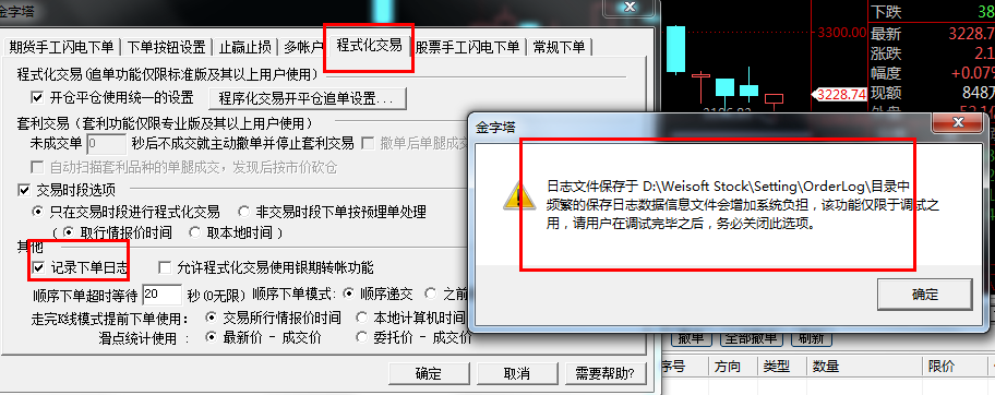 2,实际下单情况是有日志记录的,您下单的时候在 菜单栏 工具-选项-程序化交易栏中勾选交易日志即可
