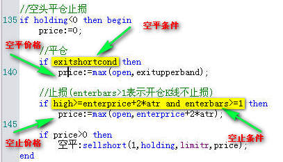 请问超级版主: 图中这样的空头平仓止损条件写在一起, 如果平仓语句和止损语句对调会有影响吗?