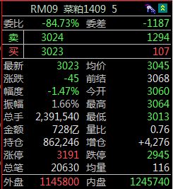 RM09 今日 图表上最低是 3014  数据上是3013