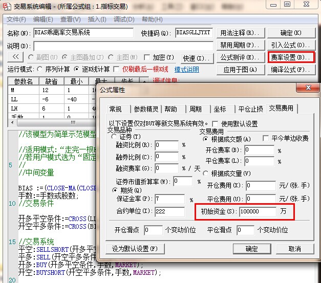 不是这个,我是说的图表虚拟资金。公式编辑界面-费率设置你看下