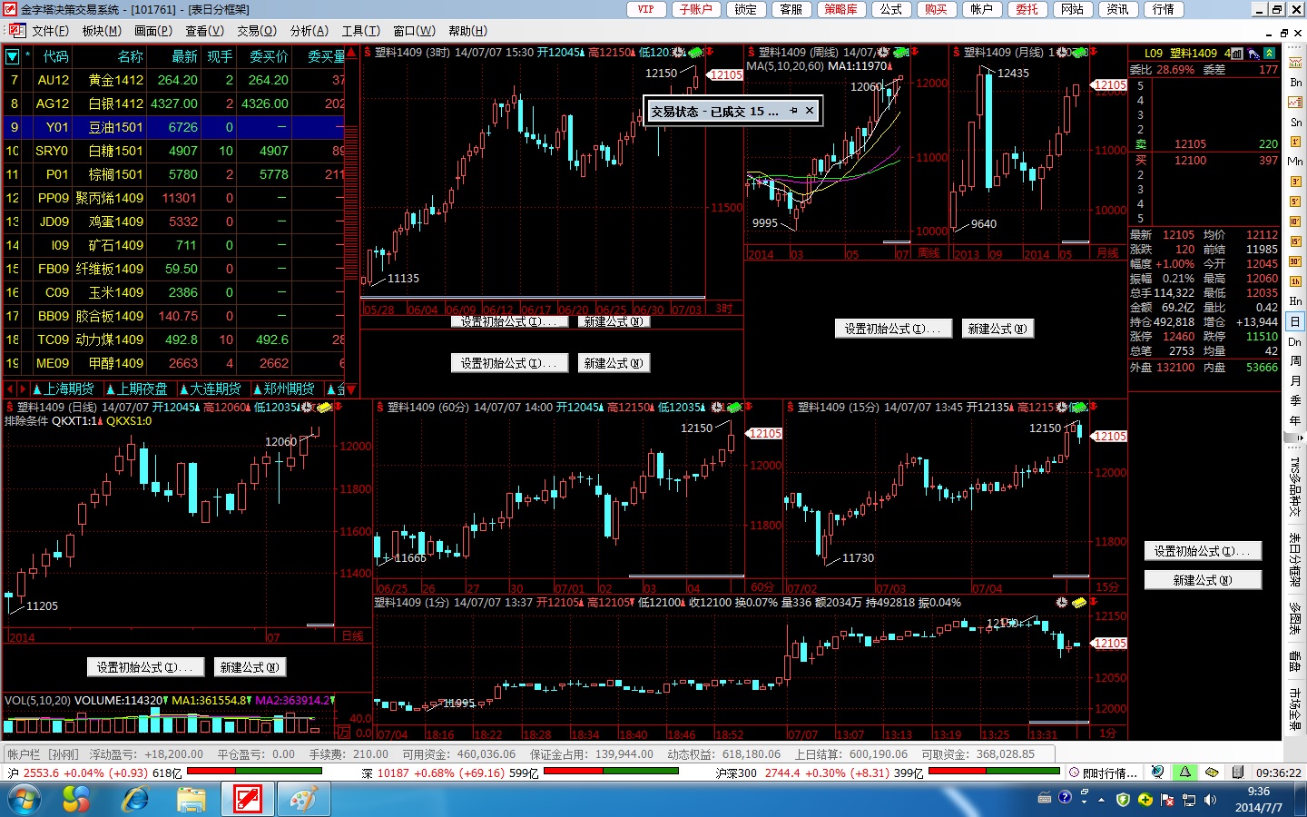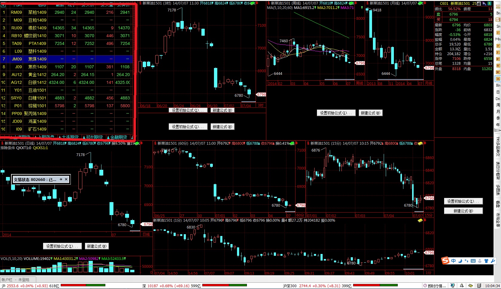 你可以看下附件,到9:36分,我后来换了一个免费期货服务器登录,还是有一些品种没有行情。
