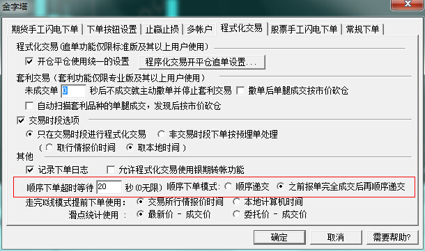 那你是什么问题,20秒这个设置就是在交易-下单设置-程式化交易里你看下