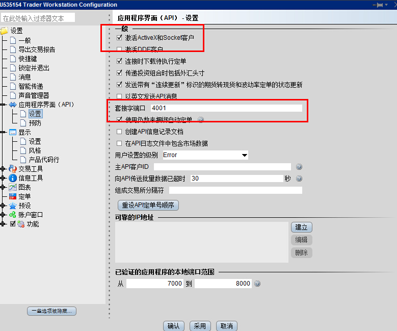 2,先打开TWS,把设置里面的端口改成4001