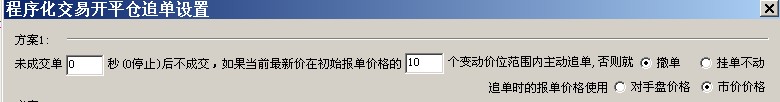 关于程序化追单设置的“未成交单0秒后不成交”  发帖心情 Post By:2014/9/12 8:33:52 [只看该作者]