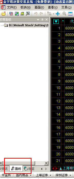 1,管理面板-》画线 看下有没有画线文件,双击这个文件,拖动k线图上的滚动条找画线