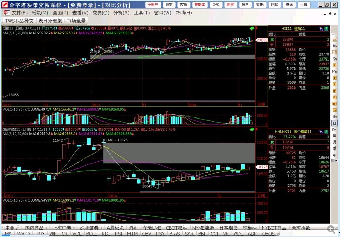 我想每天开机都看到2个品种图上下对比分析(菜单里点画面-》多图组合-》2图对比分析组合)