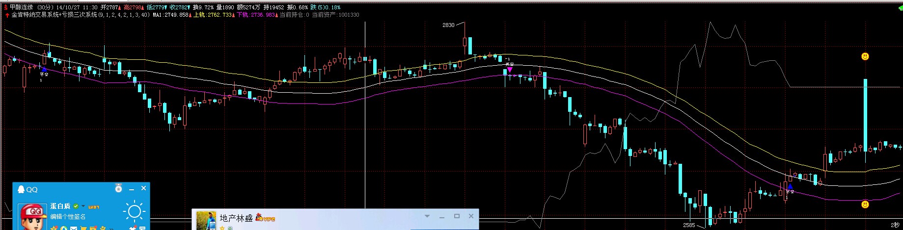 就是那根大阴线是错误的,我刷新了数据还是不对,甲醇连续2014.11.13/9:30的开盘价是2763,你们是这样的吗